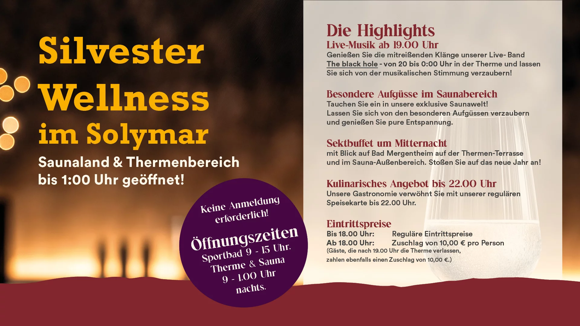 Wer hier eintaucht, lässt sich von sanften Wasserstrahlen massieren, empfindet den eigenen Körper als fast schwerelos und gönnt Körper und Seele ein Auszeit. Was gibt es schöneres nach einem langen, hektischen Arbeitstag, oder an einem neblig kalten Tag im November?!